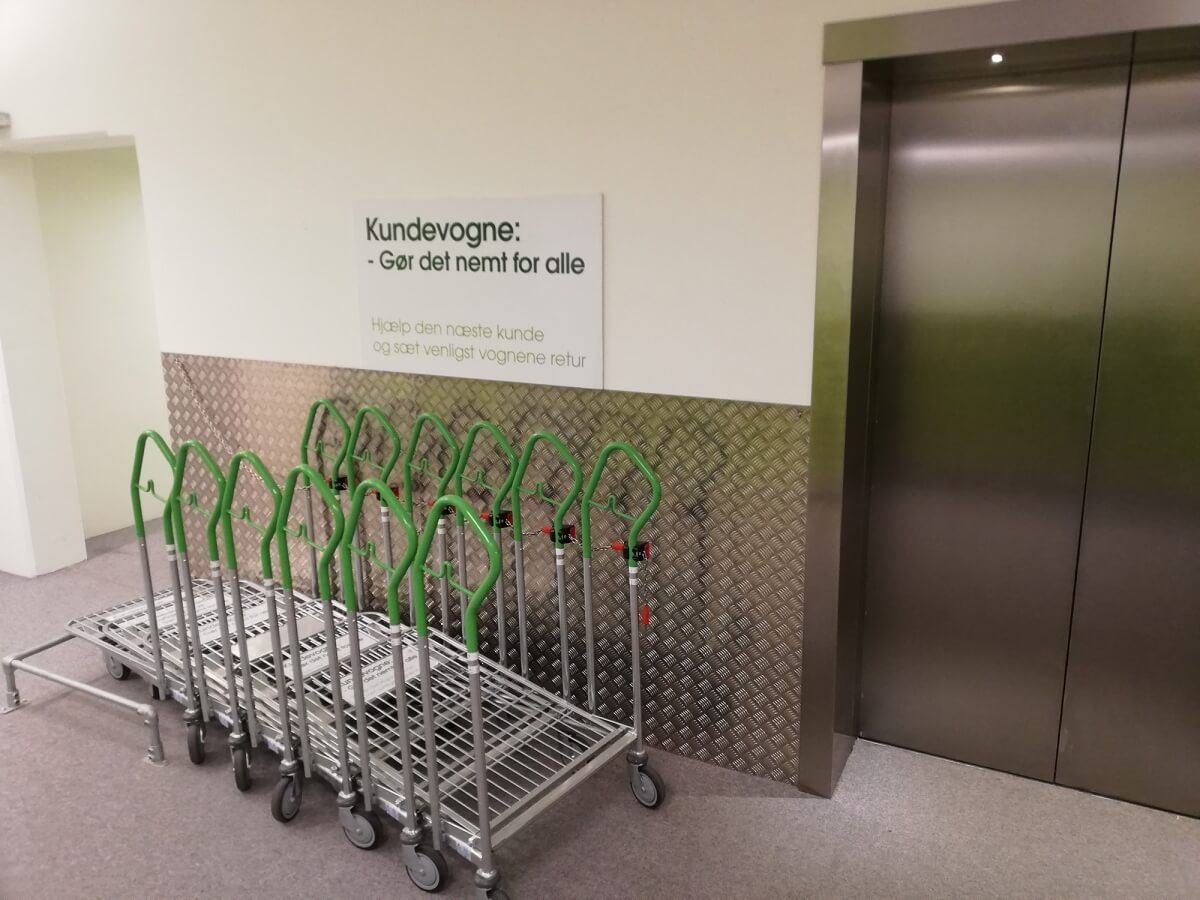 Der er et begrænset antal af vogne, så tag max 2 stk. i brug pr. kunde, så der er vogne til alle.